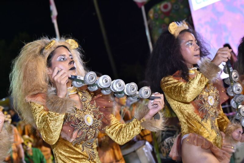 La primera comparsa que desfiló en la segunda noche de los Carnavales Barriales fue Porto Carioca (agrupación invitada), que contó con la presencia de Dayana Reichembach como bastonera.