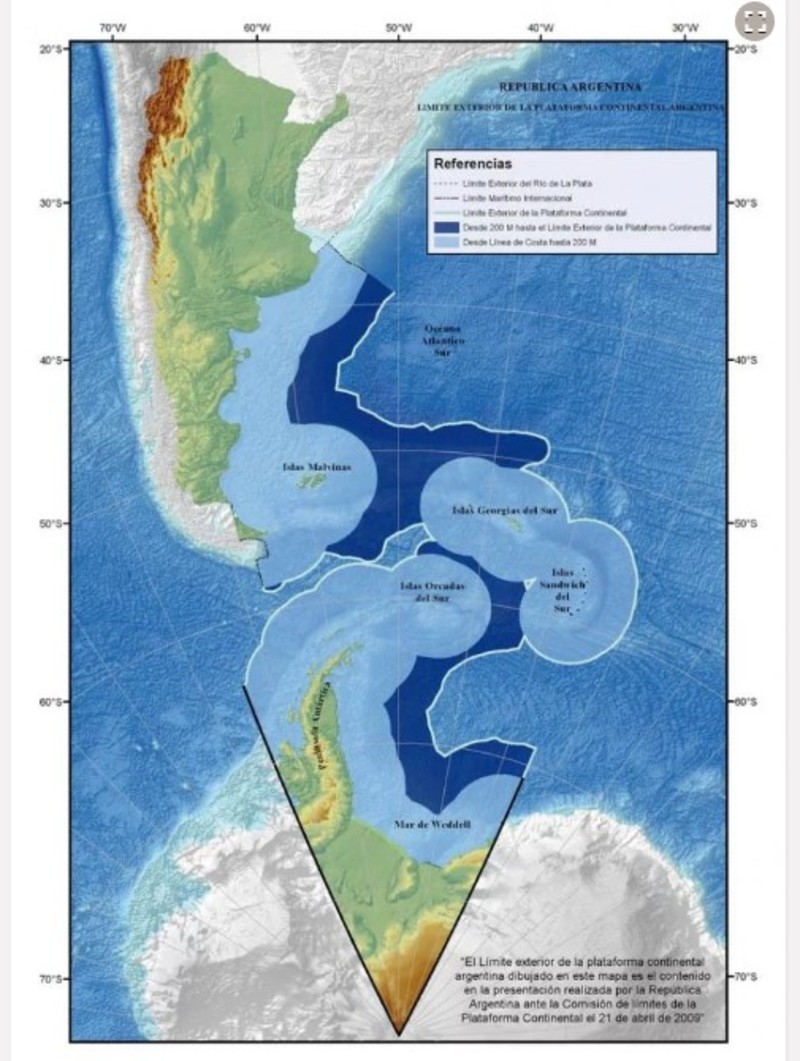 La Comisión de Límites de la Plataforma Continental de la ONU avaló en el 2016 el pedido de Argentina, y confirmó que la plataforma continental del país ahora tiene 1.633 kilómetros cuadrados más.
