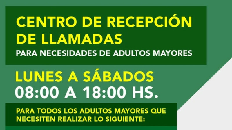 1) CENTRO DE RECEPCIÓN DE LLAMADAS: Implementaremos un centro de recepción de llamada, el cual funcionara de lunes a sábados de 08:00 a 18:00 hs. El mismo estará coordinado por la Dirección de Juventud Municipal. A este centro de llamadas podrán comunicarse todos los adultos mayores que necesiten realizar lo siguiente: