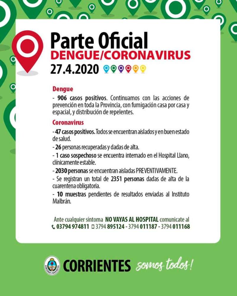 «Desde el Gobierno de Corrientes nos adherimos a la extensión del Aislamiento Social Preventivo y Obligatorio decretado por la Nación hasta el 10 de mayo». «Correntinos, no echemos por la borda el esfuerzo que hicimos hasta este momento. Tenemos que seguir cuidándonos entre todos», dijo Valdés.
