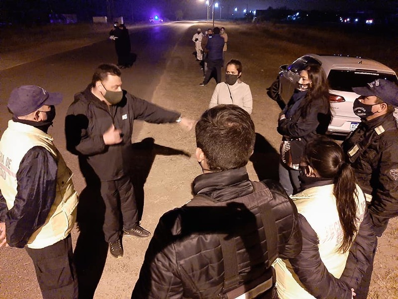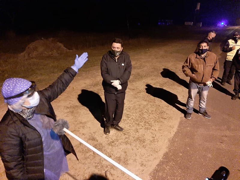 En la noche del sábado el Intendente municipal, acompañado de la Directora adjunta del hospital la Dra. Romina Cabral, del Comisario Aquino, del jefe de Bomberos Eduardo Tarrosa, entre otros funcionarios, se hicieron presentes en el puesto de control de camiones de trasporte hortícola para recordar a los choferes como tienen que cumplir los protocolos vigentes dentro de la ciudad. Sananez pidió encarecidamente que no tengan contacto con otros trabajadores.