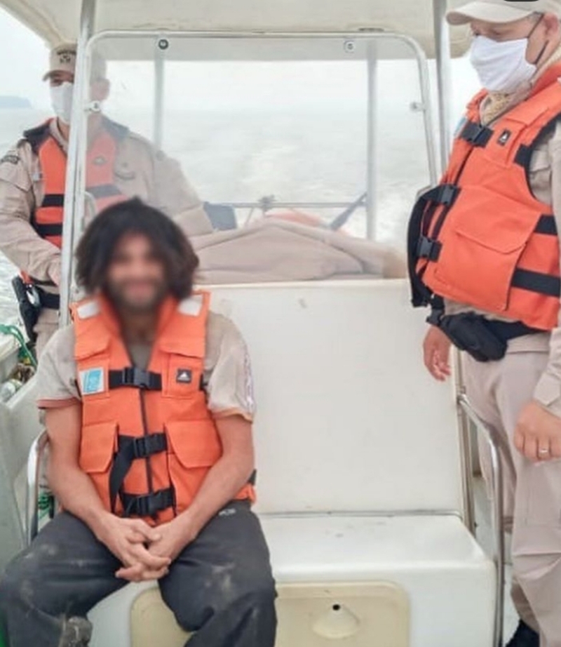 Efectivos de la Prefectura Naval Argentina, rescató a Maximiliano en zona de Isla Toro (kilómetro 1078 del Río Paraná).