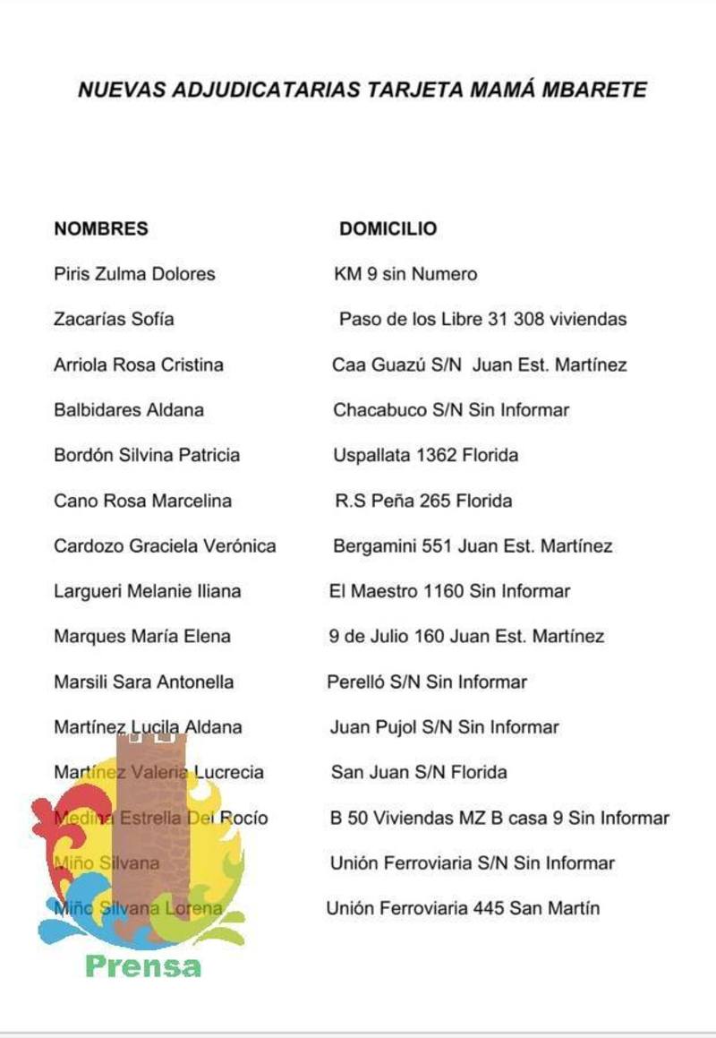 InicioInteriorMonte Caseros: Lista de nuevas beneficiarias de la tarjeta Mamá Mbareté Interior Monte Caseros: Lista de nuevas beneficiarias de la tarjeta Mamá Mbareté 28 julio, 2020 Monte Caseros: Lista de nuevas beneficiarias de la tarjeta Mamá Mbareté La Municipalidad de Monte Caseros, informa el listado de las nuevas adjudicatarias de la tarjeta Mamá Mbareté. FacebookTwitterPinterestWhatsApp Deberán asistir con la Libreta de embarazo/nacimiento y DNI. De lunes a viernes de 08:00 a 12:00 horas. TagsBeneficiariasListaMamá MbaretéMonte CaserosMunicipalidad de Monte Caseros. FacebookTwitterPinterestWhatsApp Artículo anteriorChaqueño fue a Mendoza, mató a su jefe y lo calcinóArtículo siguienteLos embarcadizos en Usuahia dados de alta serán repatriados a Corrientes ARTÍCULOS RELACIONADOS Interior Bella Vista fortalece su perfil educativo y social: inicio de clases universitarias y apoyo a jefas de hogar Interior Hormaechea refuerza el eje productivo y comercial para mitigar el impacto del cierre de la textil Alal Interior Bella Vista: «Vacaciones en tu Barrio” llevó una tarde de juegos al playón del CIC Interior Municipalidad de Goya abonará el Plus de Refuerzo para contratados y planta permanente https://youtu.be/oXC3Rxakiu0 Más leídos El SMN renovó el alerta por tormentas para Chaco, Corrientes, Entre Ríos, Santa Fe y Sgo. del Estero Info. General La falta de valores en nuestra sociedad Info. General Como prevenir la broncoaspiración en bebes Salud Filtran fotos íntimas de Luciano Castro completamente desnudo Entretenimiento Tamara Bella en una producción super hot Entretenimiento