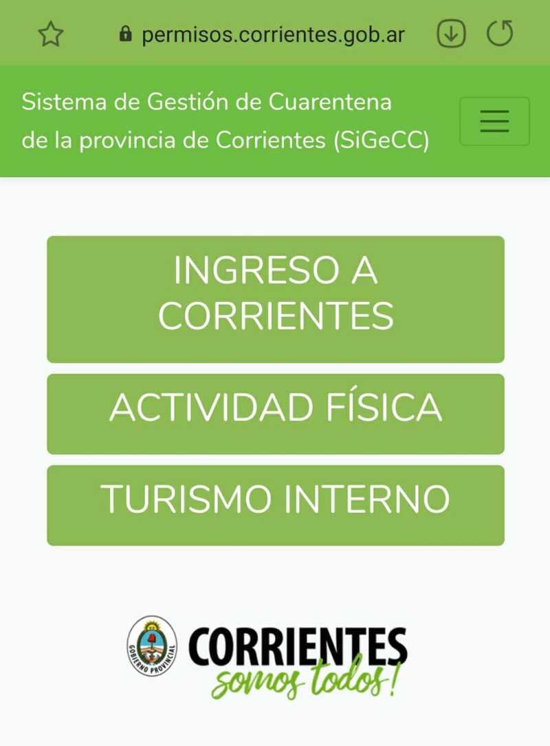 La misma, se debe informar ingresando a la página implementada por el gobierno accediendo a permisos.corrientes.gob.ar y una vez en la pantalla principal se debe seleccionar la opción: Ingreso a Corrientes.