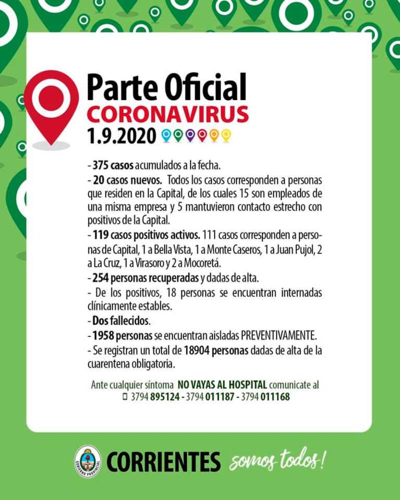 El parte oficial de los casos de Coronavirus en toda la provincia, detalla que se registraron 20 nuevas personas con diagnóstico positivo de la enfermedad.