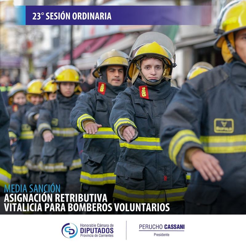Con la esperanza de convertirse en ley antes de que termine el año, el proyecto de 𝐀𝐬𝐢𝐠𝐧𝐚𝐜𝐢𝐨́𝐧 𝐑𝐞𝐭𝐫𝐢𝐛𝐮𝐭𝐢𝐯𝐚 𝐕𝐢𝐭𝐚𝐥𝐢𝐜𝐢𝐚 𝐏𝐫𝐨𝐯𝐢𝐧𝐜𝐢𝐚𝐥 (𝐀𝐑𝐕𝐏) para el personal que desempeña tareas de Bombero Voluntario, autoría del Presidente de la Cámara de Diputados Perucho Cassani, obtuvo la media sanción por unanimidad de la Cámara de Diputados.