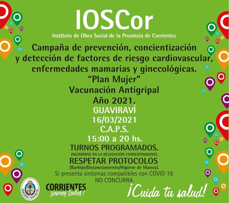 Teniendo en cuenta que el plan de vacunación en este sentido está exclusivamente bajo la órbita del ministerio de Salud Pública de la Provincia, quién a través de distintos mecanismos otorga los turnos y cumple con la vacunación, el IOSCOR, ajusta sus planes vigentes a los tiempos en que sus afiliados posean los turnos y las fechas de vacuna contra el Covid-19.