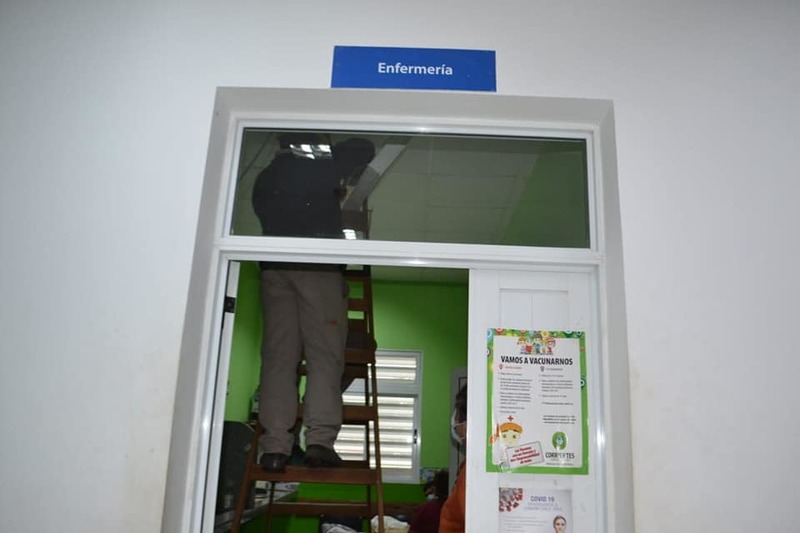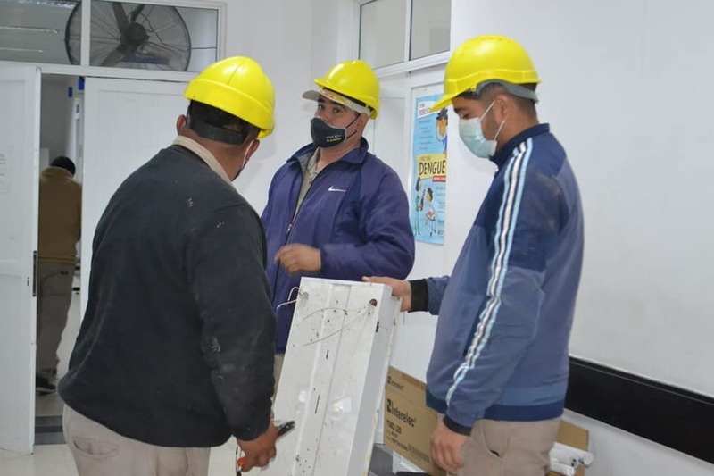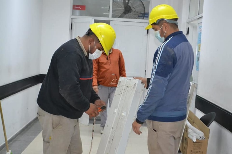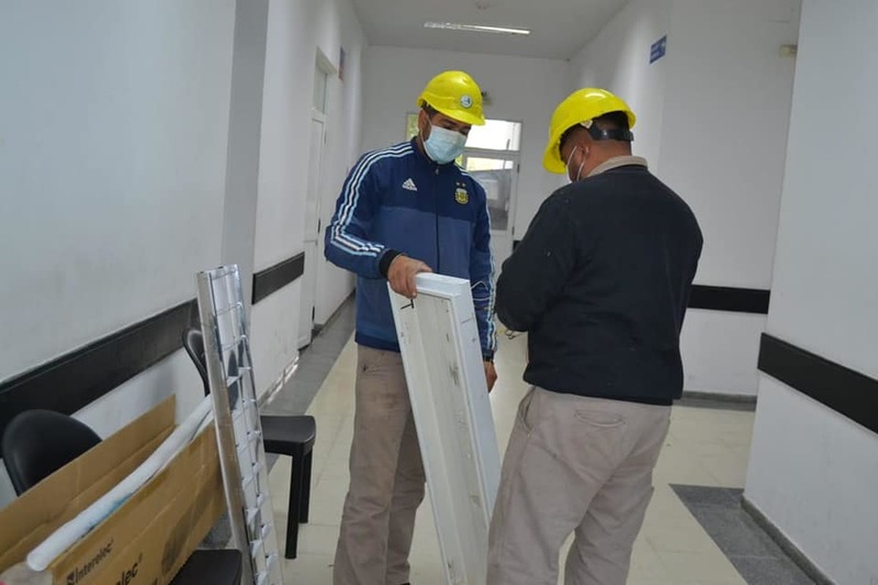 En este momento, personal de Electrotecnia Municipal se encuentra arreglando la iluminación del Hospital Pte. Raúl Alfonsín de Riachuelo.