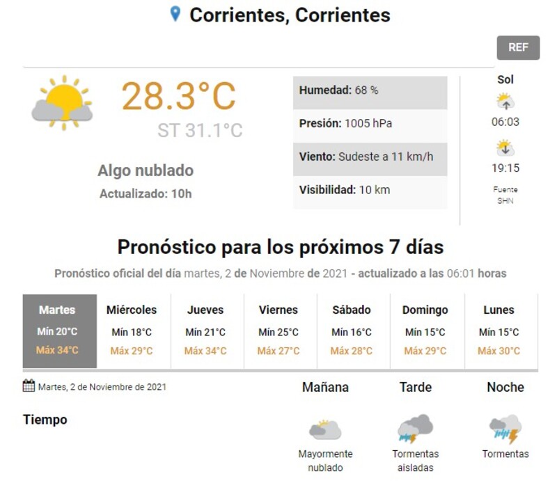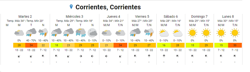 La capital provincial tendrá hoy un día con máxima de 34° y mínima de 20°, para la tarde la situación se modificaría alcanzando hasta 70% de posibilidades de lluvias y tormentas aisladas, lo que se mantendría hacia la noche con 40% de posibilidades de lluvia, y una reducción de la temperatura que podría rondar los 22°.