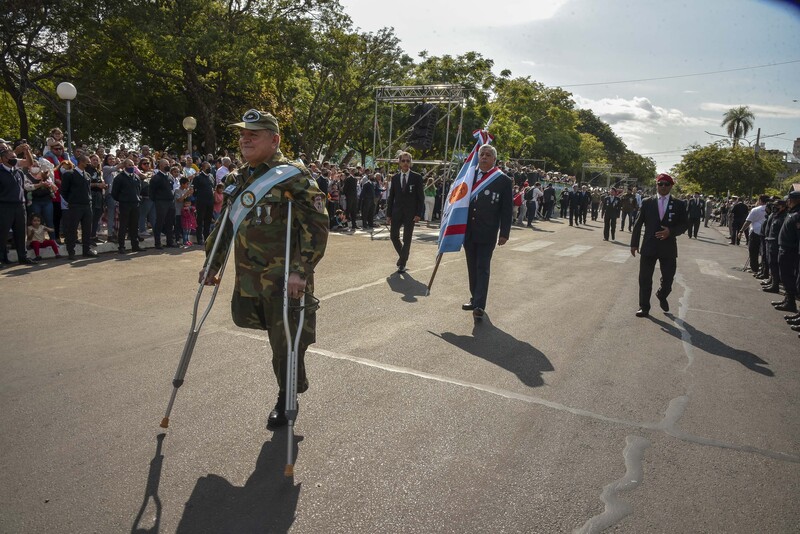 También bajo cálidos aplausos hicieron su paso los excombatientes de Malvinas, Centros de hijos de excombatientes de Malvinas, representantes de las distintas fuerzas militares, Ejército, Gendarmería Nacional, Prefectura, Policía Federal, Policía de la provincia, Servicio penitenciario.
