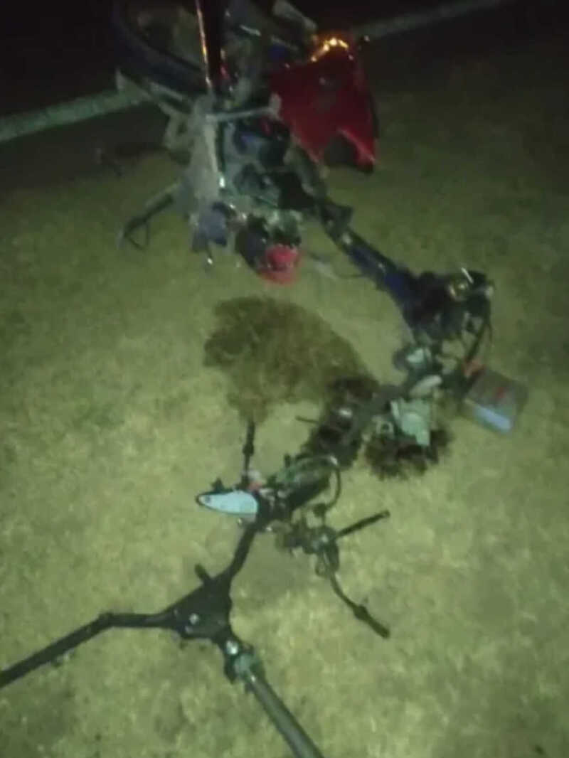 Según el conductor de la camioneta, él quiso adelantarse a un camión y se encontró con el vehículo menor que iba sin luz, algo que será dificil de precisar ya que la moto quedó reducida a pedazos.