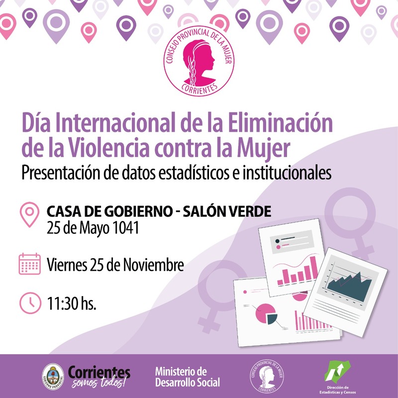 En el marco del Mes de la No Violencia contra la Mujer, fecha que se conmemora el 25 de noviembre. El Consejo Provincial de la Mujer, hará la presentación oficial de los datos estadísticos e Institucionales. El mismo será este viernes 25 a las 11:30 en el Salón Verde de Casa de Gobierno.