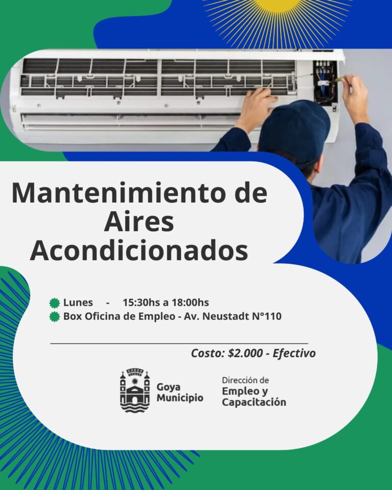 Mantenimiento de aires acondicionados: El curso capacita para realizar mantenimiento preventivo (limpieza, filtros) y reparar fallas técnicas en equipos tipo Split, frío-calor. Inicia el lunes 23 de 15 a 18,30 horas, en box de Empleo.