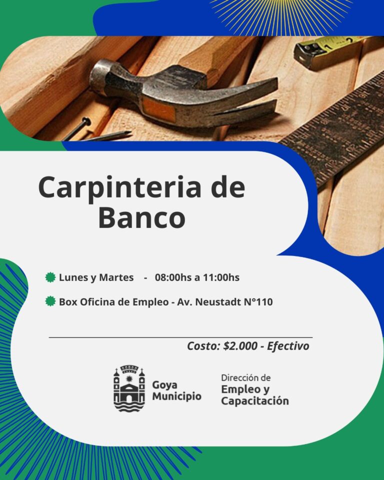 Carpintería de banco: La capacitación desarrolla conocimientos para aplicar las diversas “formas de hacer” con madera a través del manejo de técnicas y herramientas manuales, eléctricas, acabado simple para la elaboración de objetos simples. El curso incorpora criterios para el uso de distintos tipos de madera reconociendo sus características y posibilidades, aplicando normas de higiene y seguridad. Inicio: Lunes 23 (días de curso lunes y martes), de 8 a 11 horas, en el Box de Empleo.