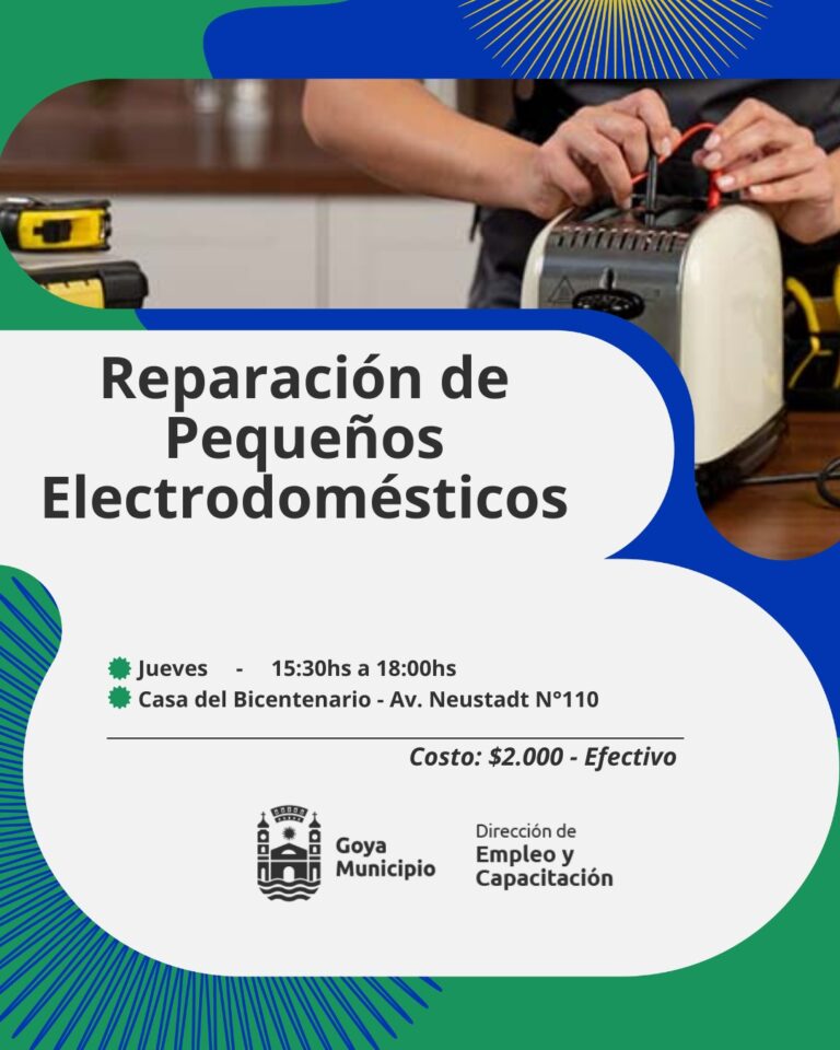 Reparación de pequeños electrodomésticos: Reparar y dar mantenimiento a pequeños electrodomésticos. Interpretar diagramas y realizar mediciones precisas. Aplicar procedimientos seguros de reparación de electrodomésticos que contengan electrónica. Inicia el jueves 26 de 15,30 a 18 horas, en Casa del Bicentenario.