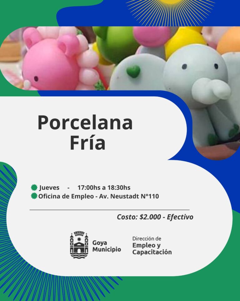 Porcelana fría: Está orientado a estimular la creatividad al modelar figuras de porcelana fría, modelando figuras paso a paso. Inicia el jueves 16, de 17 a 18,30 horas, en las oficinas de Empleo.