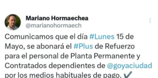 Goya: El Intendente Hormaechea anunció que el lunes 15 se abonará...