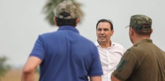 El gobernador Valdés encabezó asistencia a productores y bomberos de Alvear...